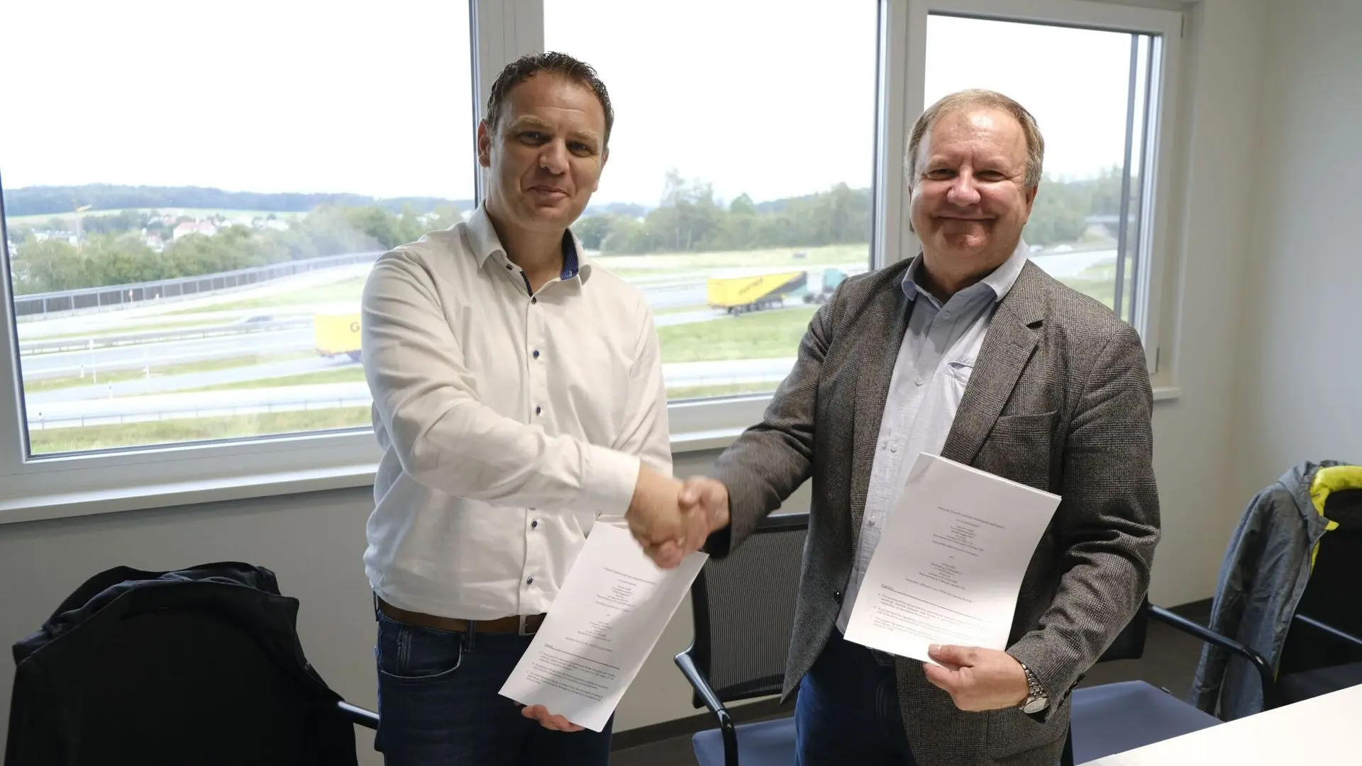 Unterzeichnung des Country-Partner-Vertrags zwischen FENECON und Elinta Links: Franz-Josef Feilmeier (CEO), rechts: Dr. Vytautas Jokužis (CEO Elinta)