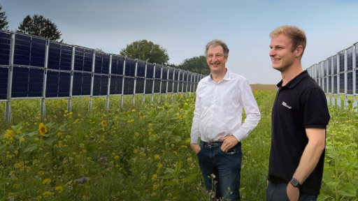 Bayerns erste vertikal aufgeständerte Agri‑Photovoltaik-Anlage. Der Unternehmer und Bio-Landwirt Franz Obermayer Senior ist gemeinsam mit seinem Sohn Franz Initiator des Vorzeigeprojektes. Projektdetails
